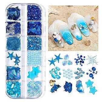 Blue Summer Beach Nail Charms Starfish Seashell Rhinestone Ocean Decorations for Acrylic Nails