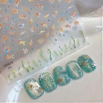 1 Pcs Goldfish Ocean Theme 5D Nail Art Stickers Embossed Seashell Decals for Summer Manicure