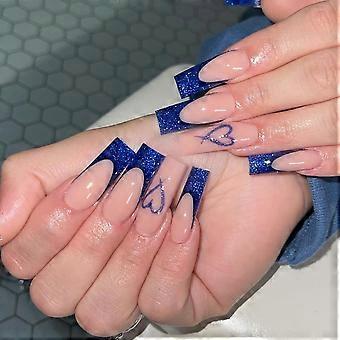 Extra Long Valentine's Day Heart Glitter Press On Nails Glossy Full Cover Fake Nails 24PCS