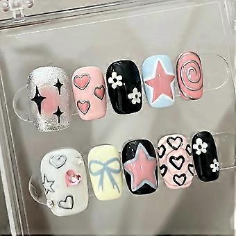Handmade Short False Nails with Unique Summer Graffiti Nail Art Designs XS Sweetheart 10PCS