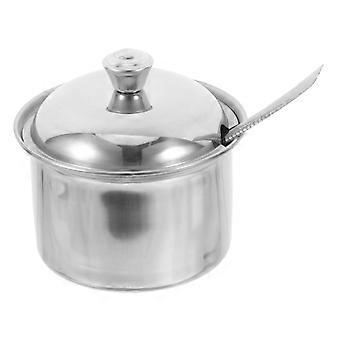 Stainless Steel Sugar Bowl with Lid and Spoon, Airtight Condiment Jar for Kitchen Storage
