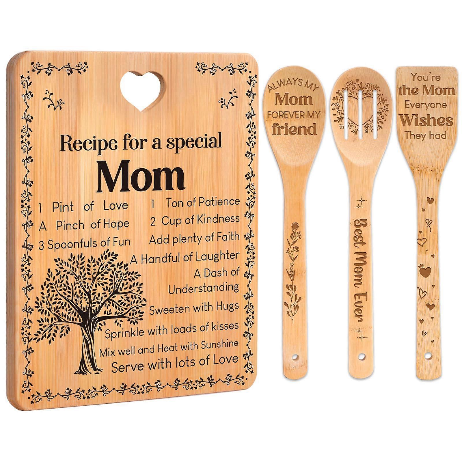 Cutting Board Set for Moms - Engraved Bamboo Kitchen Gift for Mother's Birthday from Daughter, Unique Custom Design