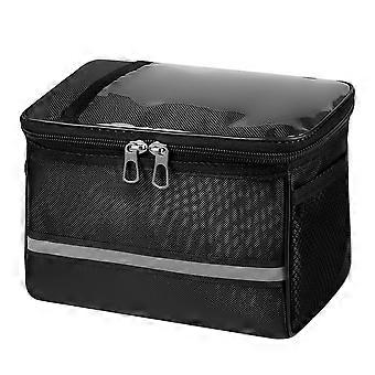 Cycling Front Handlebar Bag StrapOn Saddle Pouch Storage Tube Bag Reflective Stripe Clear Phone Pouch Black