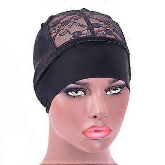 Black Lace Wig Caps 2pcs Stretchable Adjustable Fit Mesh Cap for Braids Cosplay and Daily Wear