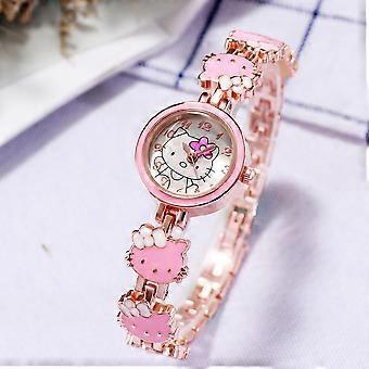 New KT Cat Watch - Women's Fashionable and Cute Children's Bracelet Steel Band Watch, Ladies' Student Electronic Quartz Watch-pink