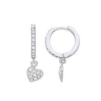 Jewelco London Ladies Rhodium Plated Sterling Silver CZ Eternity Huggie Hoop Love Heart Drop Earrings Jewelco London