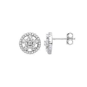 Jewelco London 9ct White Gold Round 20pts Diamond Cluster Stud Earrings Jewelco London