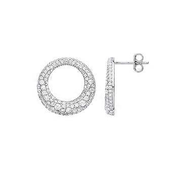 Jewelco London Ladies Rhodium Plated Sterling Silver CZ Graduated Serpent Circle Eternity Drop Earrings Jewelco London