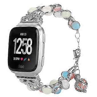 Adjustable Metal Link Band with Luminous Pearl and Perfume Pendant for Women Silver for Fitbit Versa
