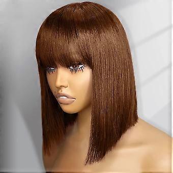 10 Inch Brown Bob Human Hair Lace Front Wig with Bangs HD Invisible Glueless 150% Density Virgin Brazilian Hair