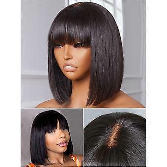 10 Inch Silky Straight Human Hair Bob Wig with Bangs HD Lace Glueless Blunt Cut Brazilian Virgin Hair 180 Density