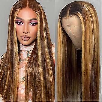 4/27 Ombre Highlight Human Hair Lace Front Wig 13x4 Pre Plucked Honey Blonde Straight Wig for Black Women 18 Inch