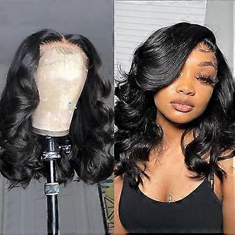 13x4 Transparent Lace Front Human Hair Wig 14 Inch Body Wave Bob Pre Plucked Bleached Knots Natural Black 150 Density