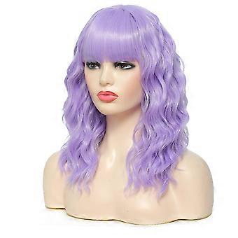 Purple Synthetic Wig with Bangs, 16 Inch Heat Resistant Fiber, Adjustable Fit for Women