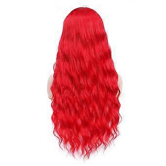 Red Long Wavy Synthetic Wig with Bangs for Women, Heat Resistant Fiber, 26 Inch Cosplay Hair