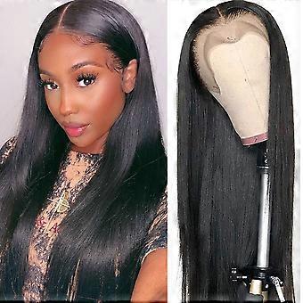 Brazilian Virgin Straight Lace Front Wig 24 Inch Pre Plucked 13x4 Transparent Lace 180 Density Natural Black Human Hair for Black Women