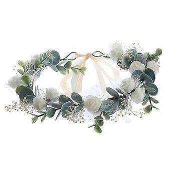 Adjustable Flower Crown Headband with Ribbon, White Boho Floral Headband for Wedding and Bride