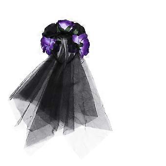 Halloween Rose Flower Headband with Black Gauze and Realistic Roses for Women's Costume Party