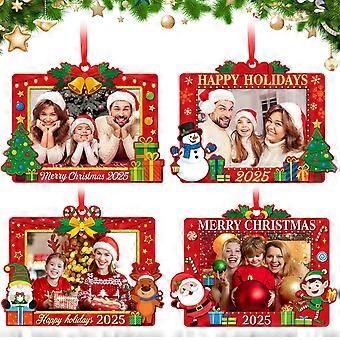 Set of 4 Christmas Photo Ornaments 2025 Wooden Picture Frame Holiday Décor Hanging Keepsakes
