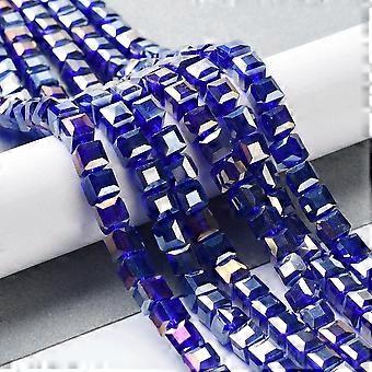Electroplate Glass Beads Strands AB color Plated Faceted Cube Blue 6x6x6mm Hole: 1mm 100pcs/strand 22 inch