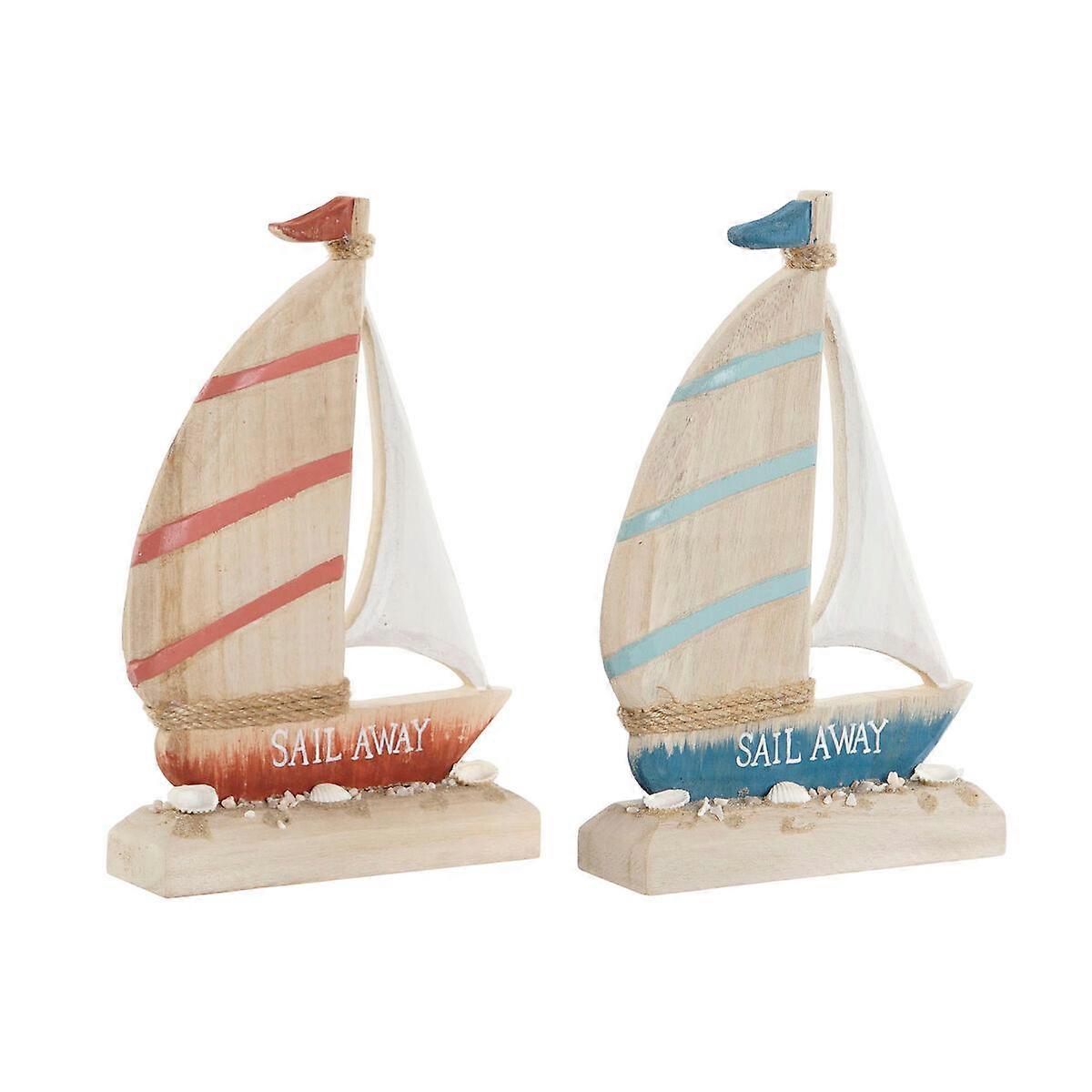 Deko-Figur Home ESPRIT Blau Rot natürlich Segelboot 15 x 4,5 x 23,5 cm (2 Stück)
