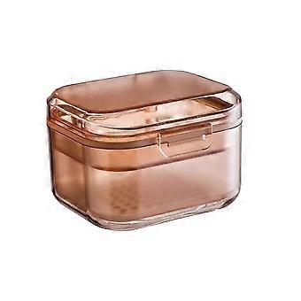 Denture Bath Case with Drain Basket, Portable Travel Denture Soaking Cups, Orange Retainer Container for Dentures