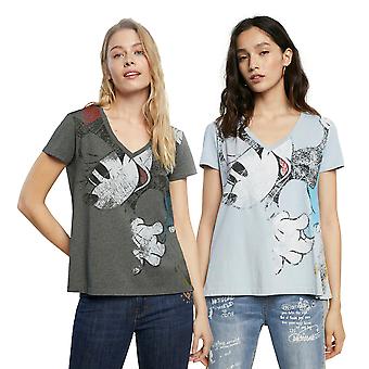 Desigual Minnie Mouse Disney V-Neck Retro Tshirt SS21 Style 21SWTKCY