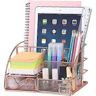 Desk Organizer For Women,cute Mesh Office Supplies Accessories Essentials Caddy With 5 Compartments+1 Mini Sliding Drawer For Home And Office Desktop