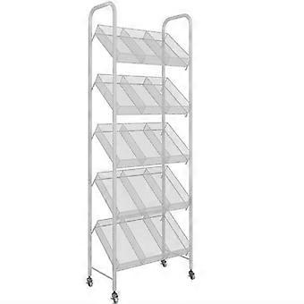 5Tier Metal Snack Display Rack with Wheels, HeavyDuty Retail Candy Shelf Stand for Supermarket