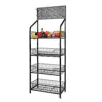 4 Tier Snack Display Rack with Wheels, Metal Candy Organizer with Hooks for Countertop and Home