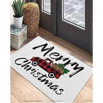 Christmas Welcome Mat with Merry Truck and Tree, Non Slip Holiday Plaid Entry Rug 16x24In