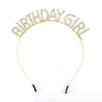 Birthday Crown Headband 2Pcs with Crystal Tiara, Elegant Alloy Design for Birthday Party