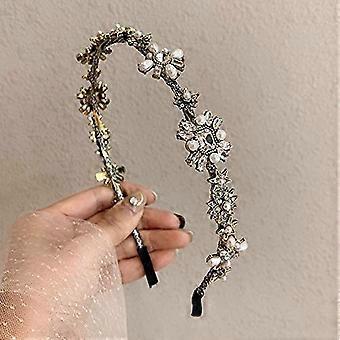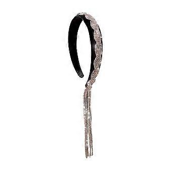 Bridal Headband with Luxury Rhinestone Tassel, Vintage Crystal Crown, Silver Wide Hair Hoop for Women