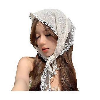 White Lace Headband for Women with Elegant Lace Trim and Breathable Chiffon Hair Scarf