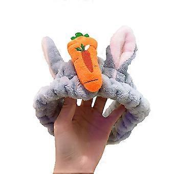 Soft Plush Makeup Headband with Cute Rabbit Ears for Face Washing and Skincare – Orange
