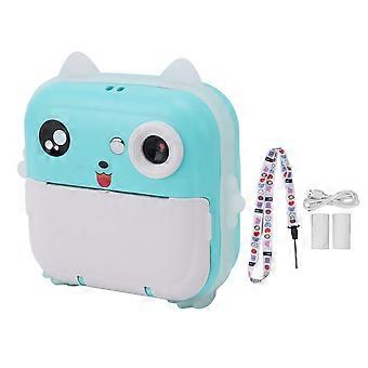 Kids Instant Print Camera with 1080P Video, 24MP Photos, Fun Frames, Blue Green Rechargeable