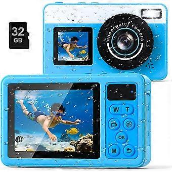 Underwater Digital Camera 2.7K 48MP Waterproof 10 Feet Dual Screen for Snorkeling and Diving Blue
