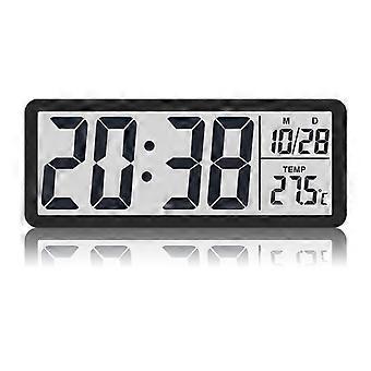 Digital Wall Clock with Large Display, 12/24 Hour Format, Temperature Display, Battery Operated, Black for Bedroom Office Garage