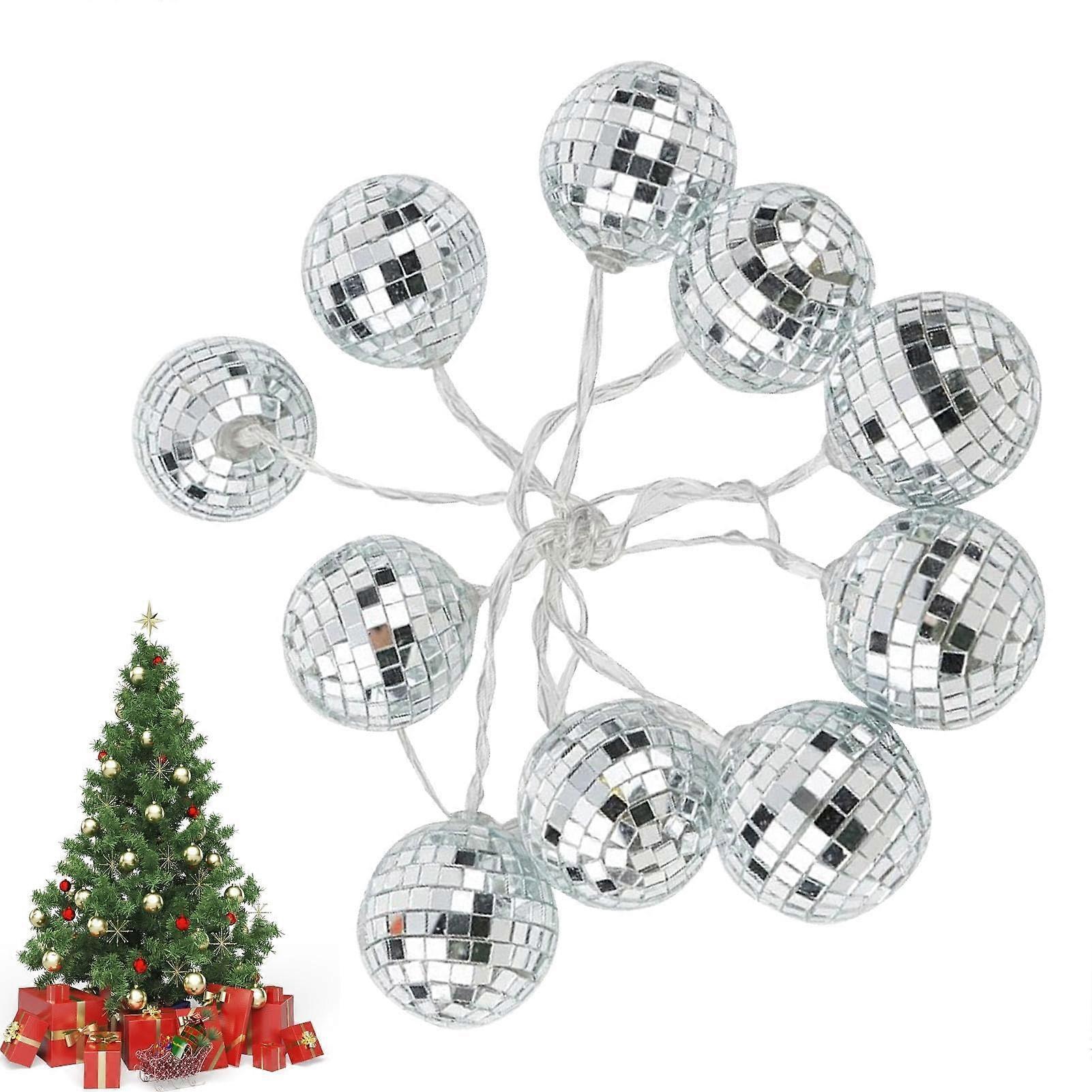 Disco Ball Fairy Lights - 10 LED Light Balls - 70s Party Decorations - Hanging Ornaments for Tree and Event Lighting