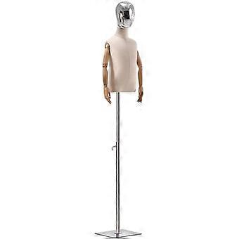 Adjustable Silver Kids Mannequin with Wooden Arms and Metal Base for Clothing Display