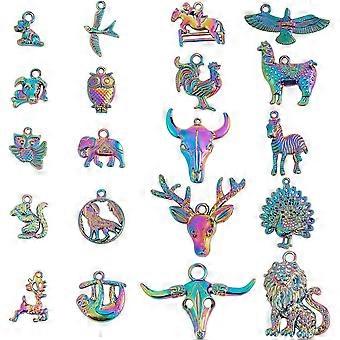 20 Pcs Rainbow Animal Charms Lion Elephant Peacock Monkey Wolf Cow Bead Charms Alloy Metal Pendants for DIY Necklace Bangles Bracelets Earrings Keycha