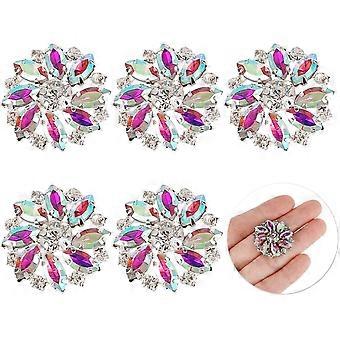 DIY 6PCS 26.5MM Flower Brass Rhinestone Shank Buttons Crystal AB Color Sew On Buttons with 1-Hole and Flat Back Fashion Claw Rhinestone DIY