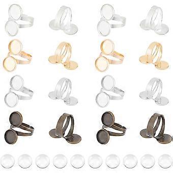 DIY Double Blank Dome Finger Ring Making Kit Including Brass Cuff Ring Findings Glass Cabochons Mixed Color US Size 9 3/4(19.5mm)~US Size 11(20.5mm) 5