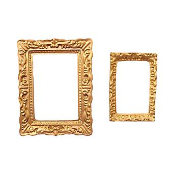 Dolls House 2 Empty Gold Picture Painting Frames Rectangular Miniature Accessory