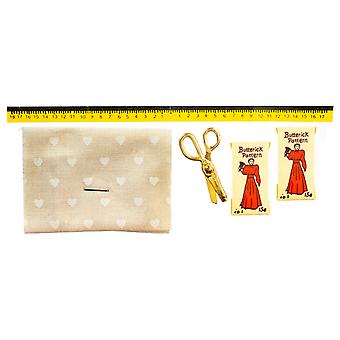 Dolls House Material Pattern Scissors & Tape Measure Sewing Dressmaker Accessory