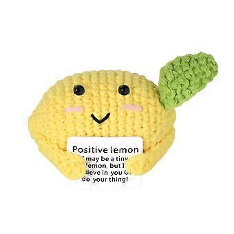 Positive Lemon Plush with Encouragement Card, 3.1 Inch Cute Knitted Lemon Doll for Gift and Decor