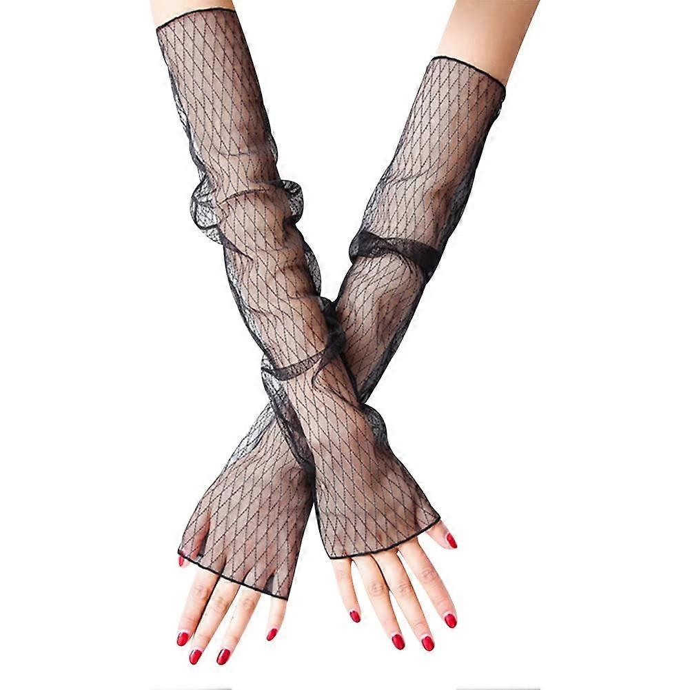 Double fingerless gloves, elegant lace hand cuffs long elbow fingerless gloves sun protection