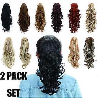 Ponytail Hair Extension with Claw Clip, Synthetic Curly Wavy Hairpiece for Women, Black 2pcs