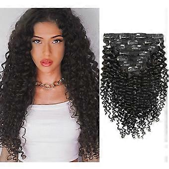 14 Inch Kinky Curly Human Hair Clip In Extensions Remy Virgin Full Head for Black Women