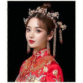 Red Crystal Bridal Tiara Crown for Women Baroque Wedding Headpiece with Elegant Retro Design